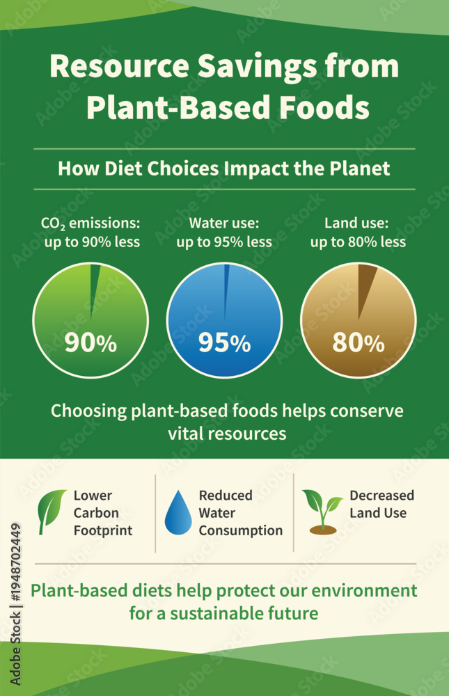 Environmental benefits of plant-based foods infographic Resource Savings from Plant-Based Foods #1948702449