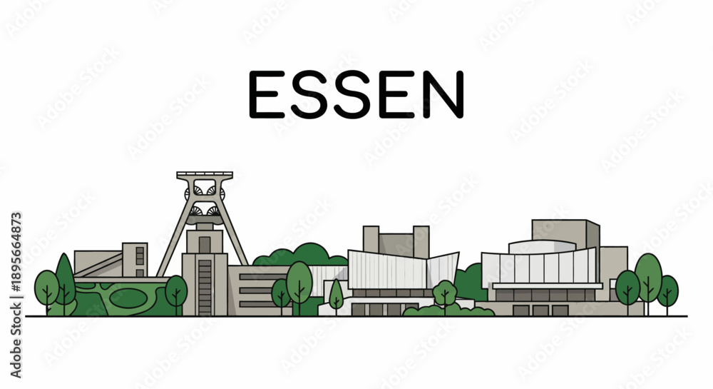 Essen city skyline with landmarks vector illustration #1895664873