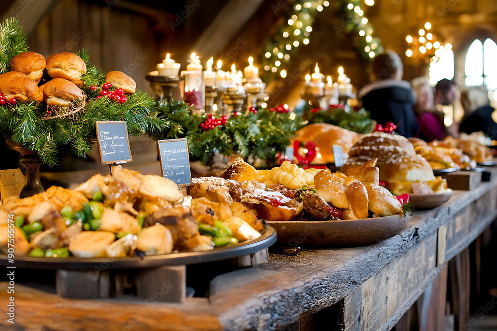 estive Christmas buffet with various holiday foods and decorations #907555574