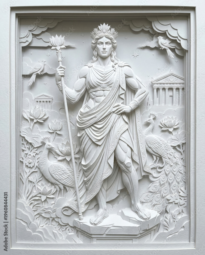Ethereal realm of mount olympus ancient greek temple sculpture in serene environment #1960844431