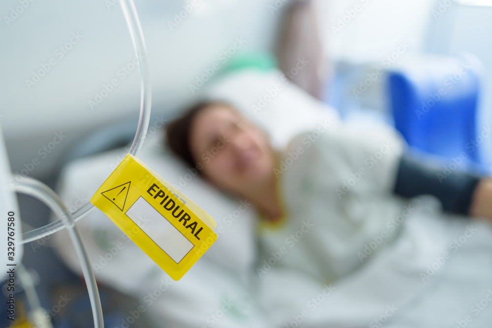 Etiqueta amarilla epidural en hospital #329767580