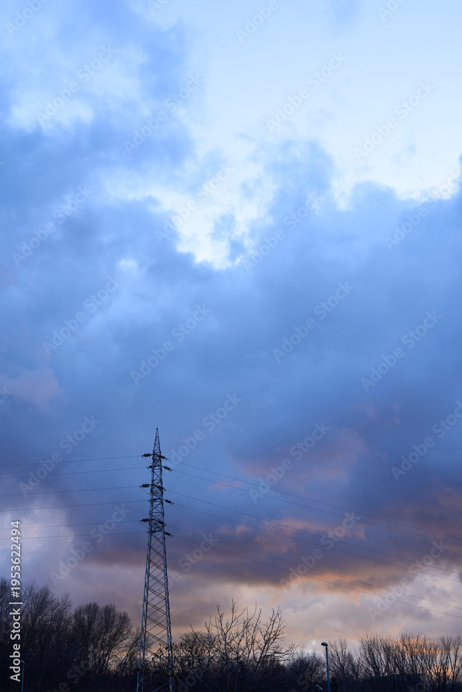 Evening Sky with Power Lines and Dramatic Clouds #1953622494