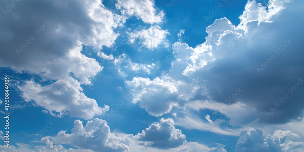Expansive Blue Sky With Fluffy Clouds and Luminous Sunlight #1760844909