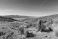 Expansive view of Bolivia's dry Andean landscape. A barrel cactus stands among sparse vegetation with distant hazy mountains under a clear blue sky. #1938602284