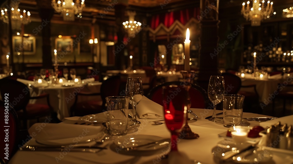 expensive restaurant interior, with a romantic atmosphere #885062092