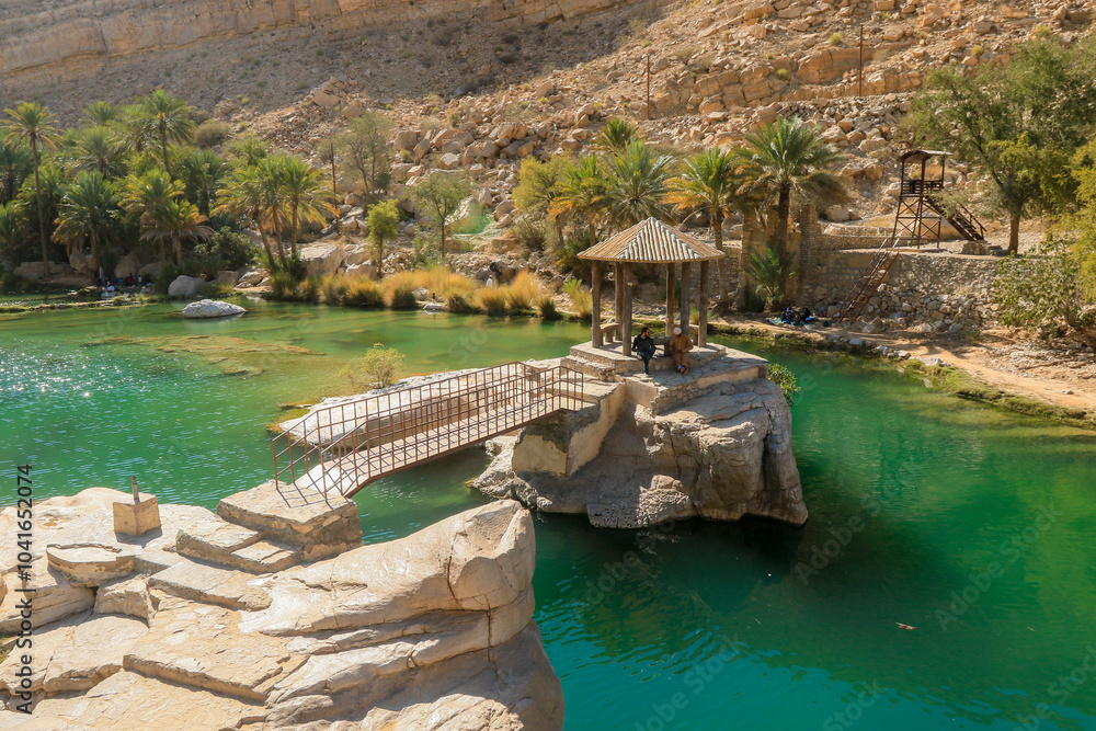 Explore the stunning Wadi Shab Oasis in Oman showcasing its vibrant waters and serene surroundings perfect for relaxation and adventure #1041652074