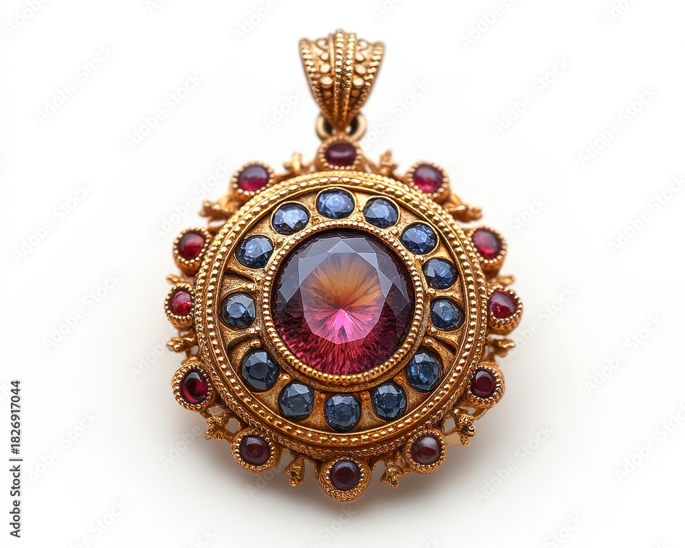 Exquisite Hyperealistic Amulet with Intricate Gemstone Design Isolated on White Background Perfect for Cultural and Fashion Use #1826917044