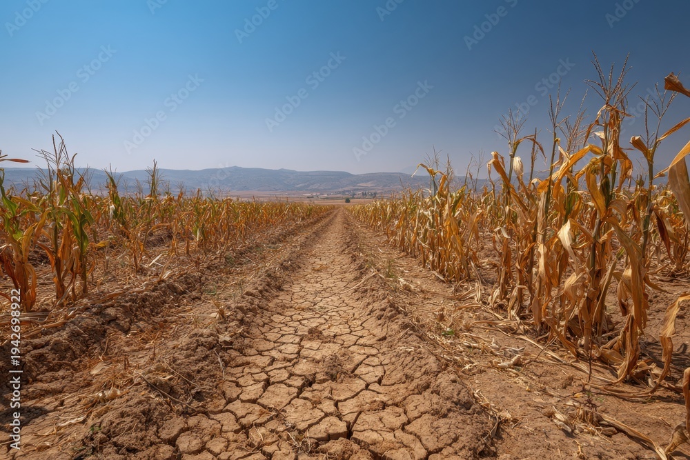 Extreme heat and arid soil in a corn field during drought season #1942698922