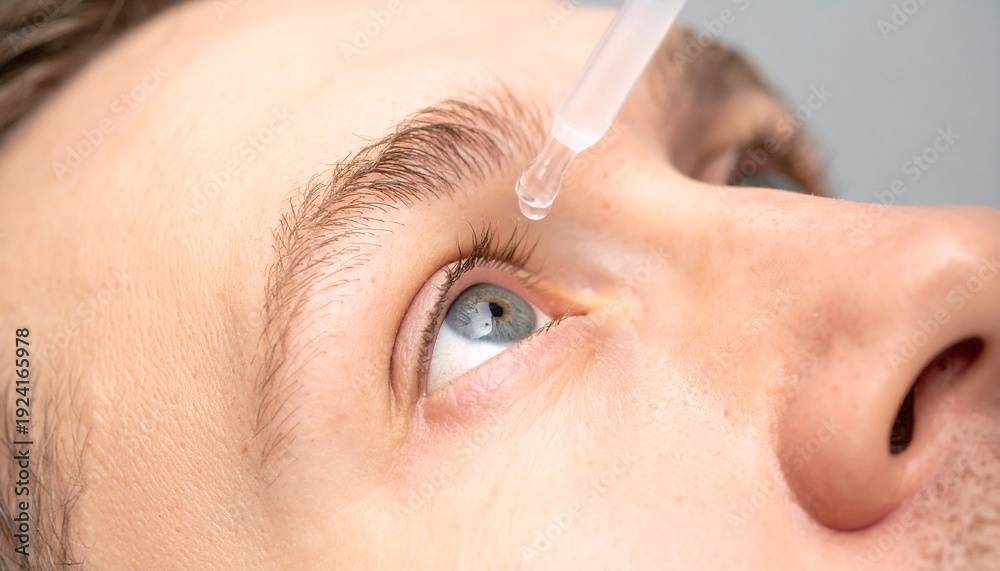 Eye drops being dropped in Eye - Eye strain medicine - Artificial Tears - Eye Strain - Pink Eye, Conjunctivitis, Glaucoma, Dry Eyes, Syndrome, Uveitis, Corneal Ulcer, Allergy, Hay fever, Itchy Eyes #1924165978