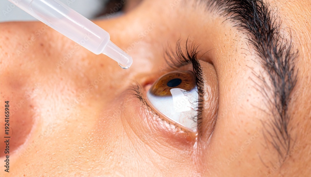 Eye drops being dropped in Eye - Eye strain medicine - Artificial Tears - Eye Strain - Pink Eye, Conjunctivitis, Glaucoma, Dry Eyes, Syndrome, Uveitis, Corneal Ulcer, Allergy, Hay fever, Itchy Eyes #1924165984