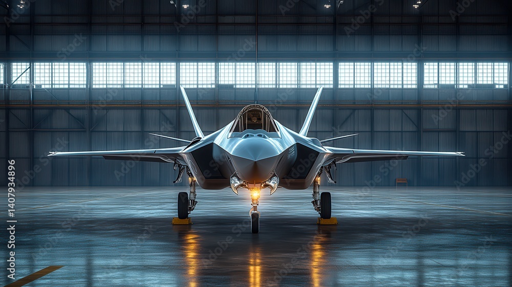 f 35 lightning ii jet a sleek military aircraft poised in a modern hangar showcasing advanced design,technology in aerospace engineering,stock image #1407934896