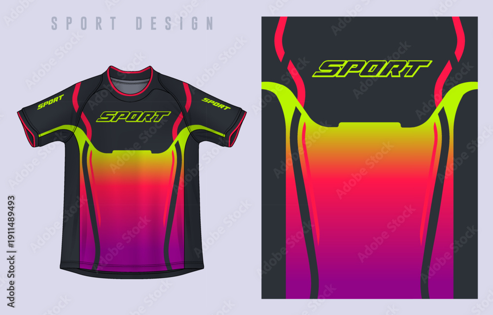 Fabric textile design for Sport t-shirt, Soccer jersey mockup for football club. uniform front view. #1911489493