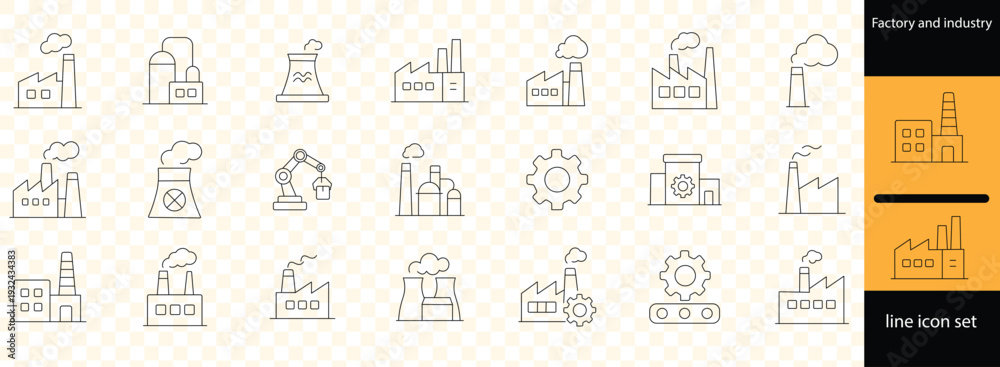 Factory and industry icons set. line, editable line icons, manufacturing and engineering #1932434383