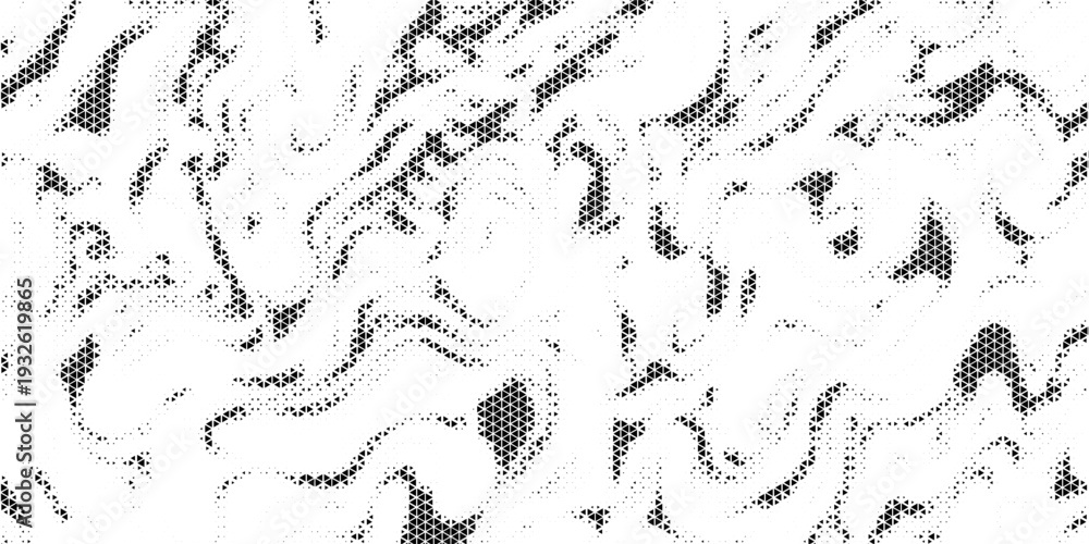 Fading triangle halftone texture gradient pattern. Abstract diagonal geometric background. Tech mosaic triangular halfton gradation. Vector vanishing corner arrow wallpaper for banner, booklet, poster #1932619865