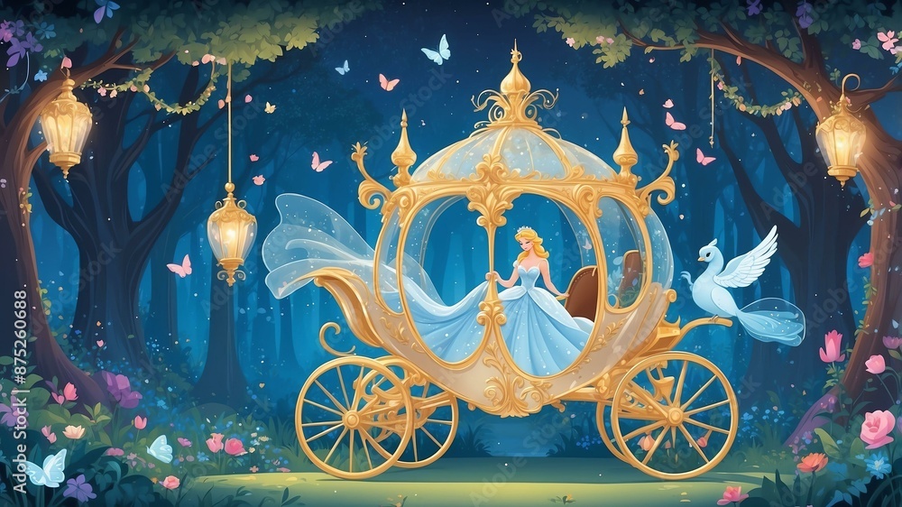 fairytale wedding cinderella carriage enchanted forest flat banner theme #875260688