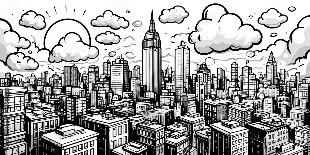 Fall cityscape background with iconic skyscrapers urban black and white #1768138191