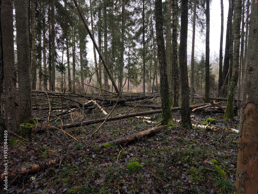 fallen trees in forest, messy forest ground, deciduous forest #1913094489