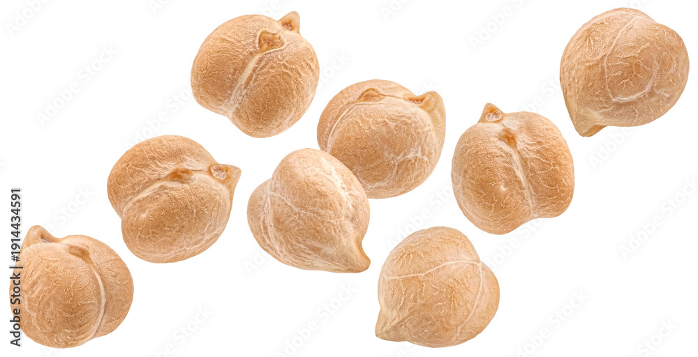 Falling chickpeas isolated on white background, full depth of field #1914434591