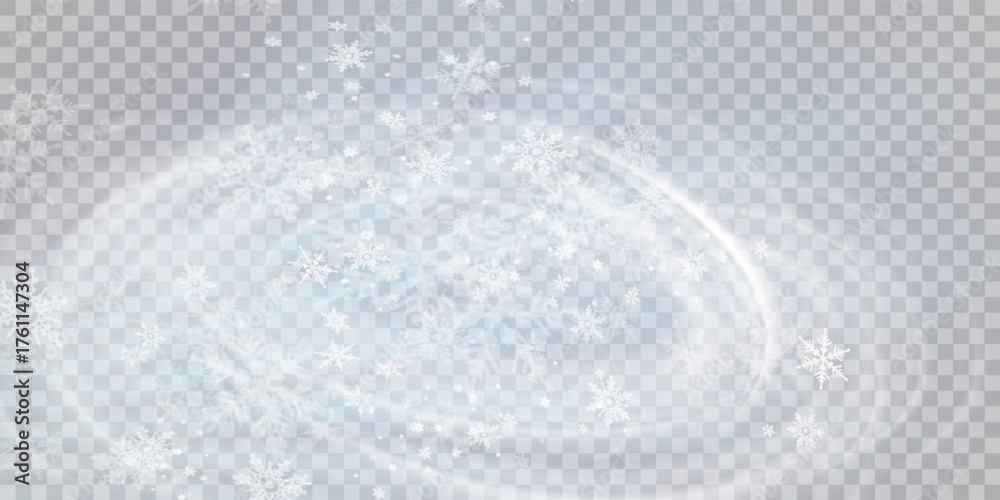 Falling snow on a transparent background. Vector illustration 10 EPS. Abstract snowflake background. Fall of snow. #1761147304