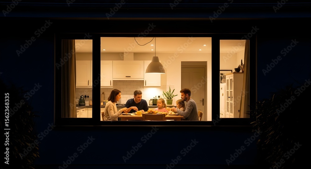 Family Dinner Scene Through a Night Window #1562368335