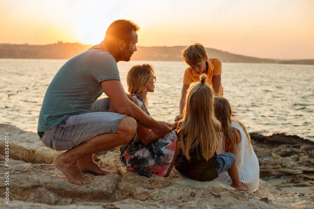 Family playing together seaside. Family playing together seaside and having a good time with their children's. Lots of love and fun, at a beautiful golden hours time. #1668344014