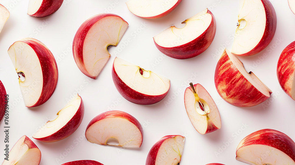 Fatias de maçã vermelha, fundo branco #765939485