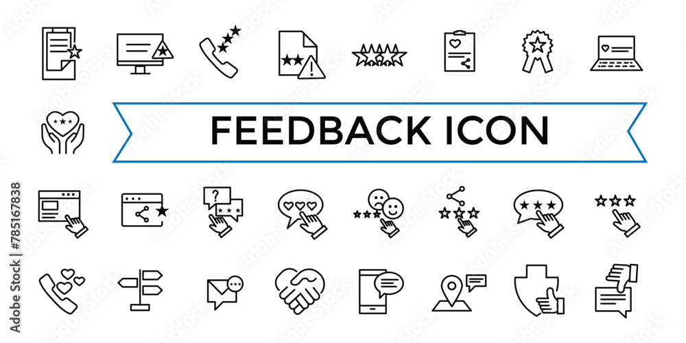 Feedback Outline Icon Collection. Line Set Icons related to Rating, Testimonials, Quick Response, Satisfaction and more. Web icons set. #785167838