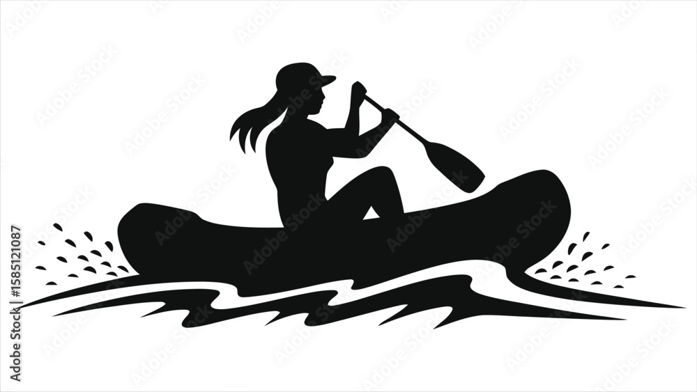Female Kayaker/Canoeist Silhouette - Outdoor Water Sports & River Adventure Vector. #1585121087
