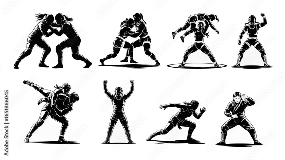 Female Mongolian Wrestlers – Traditional Bökh Action Vector #1651966045