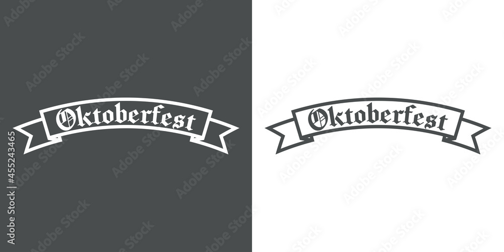 Festival de cerveza Oktoberfest. Logotipo con texto Oktoberfest en listón con lineas en fondo gris y fondo blanco #455243465