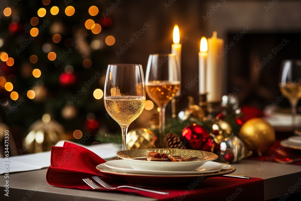 festive christmas dinner setting. Seasonal holiday dining background | Generative AI #634471330