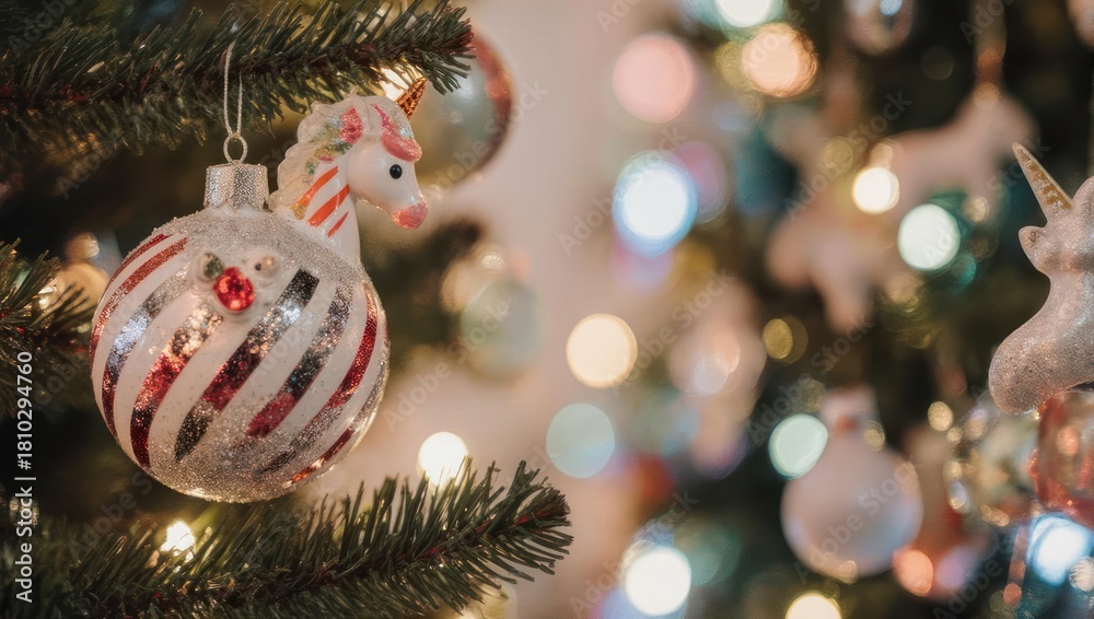 Festive Christmas Tree Decorations with Ornaments and Lights. #1810294760