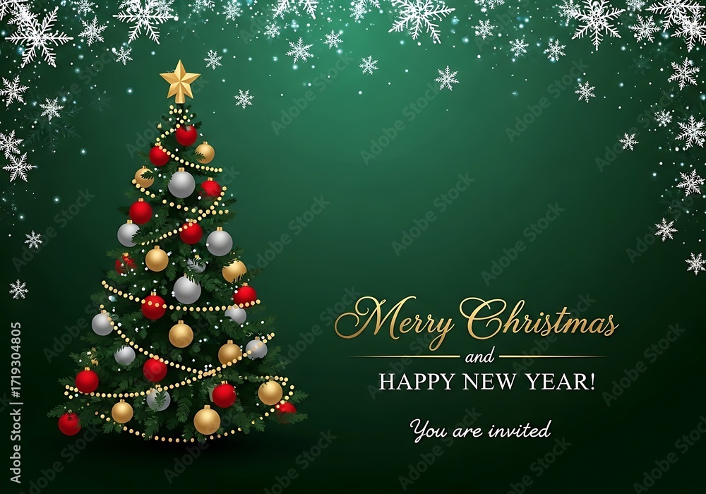 Festive christmas tree with ornaments on emerald green holiday invitation #1719304805