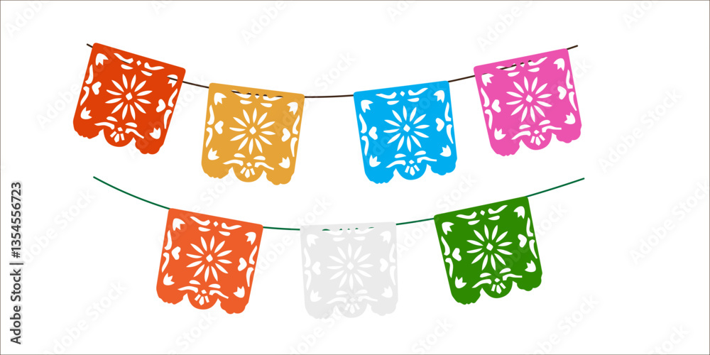 Festive color paper flags garland for Mexican holiday Cinco de Mayo, May 5. #1354556723