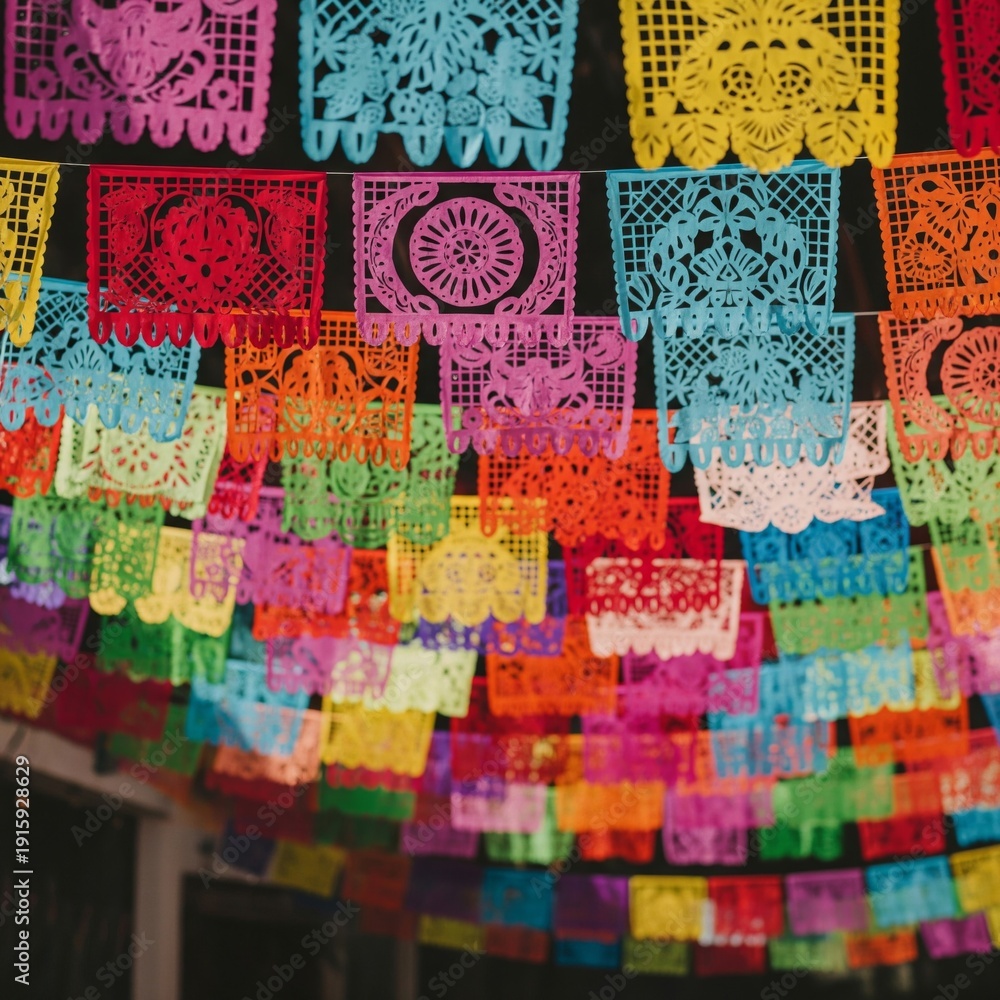 Festive Colorful Banderitas Decoration Background With Intricate #1915928629