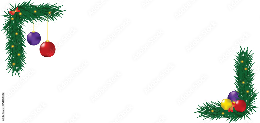 Festive Pine Corner Decorations with Colorful Christmas Baubles, Holiday Frame Accents for Seasonal Cards and Design #1790879386