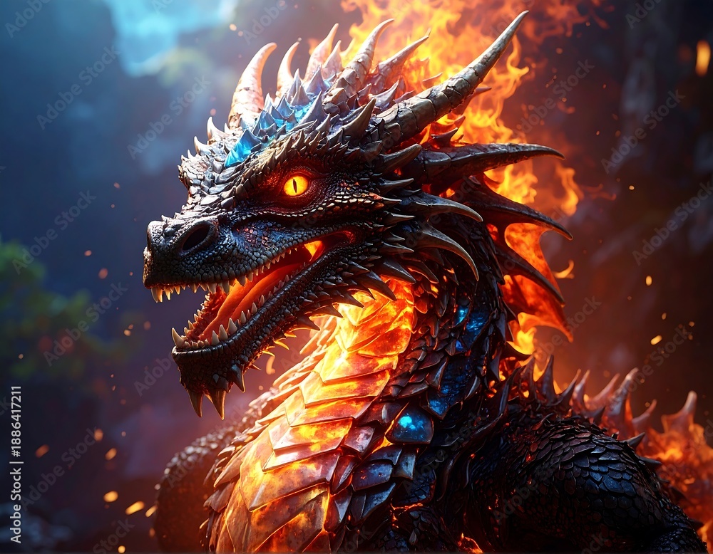 Fiery Dragon Portrait - A Majestic Creature of Myth and Legend. #1886417211
