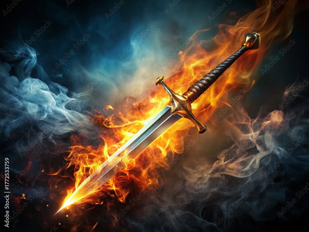 Fiery Sword Background: Epic Fantasy Stock Photo, Rule of Thirds Composition #1772533759