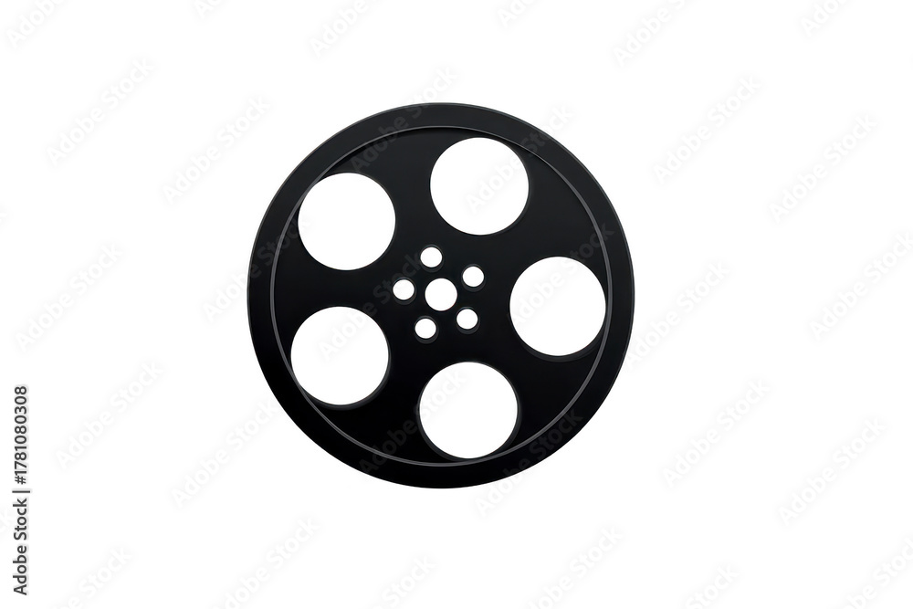Film reel movie reel cinema reel vintage black round isolated classic entertainment filmmaking object with five large holes symbolizing nostalgia and creativity #1781080308