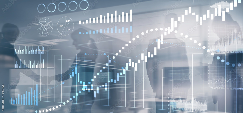 Financial histograms against the backdrop of offices. 2025 Finance background #1784833926