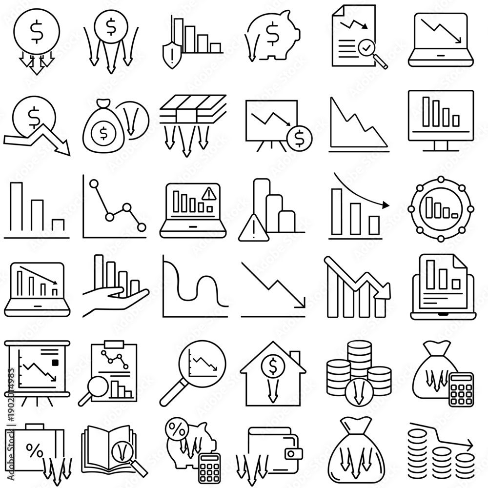 Financial losses vector icon set. Revenue decline Illustration sign collection. Market decline symbol. Economic decline logo. #1902014983