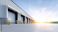Finished industrial plant with organized loading docks and clear sky at sunrise #1919961268