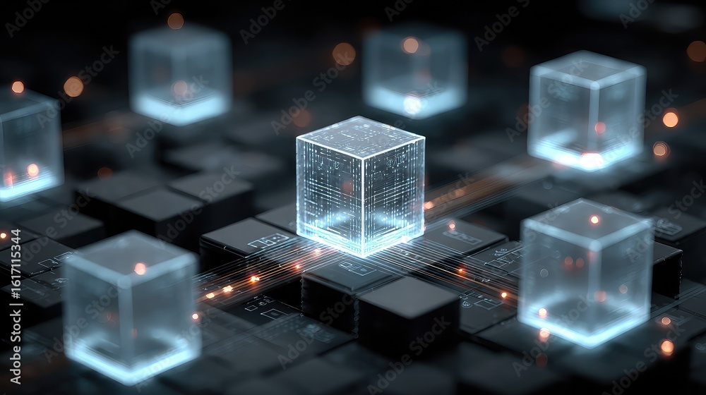 Fintech blockchain server vector with cryptographic hash strings symbolizes secure transactions and decentralized data storage #1617115344