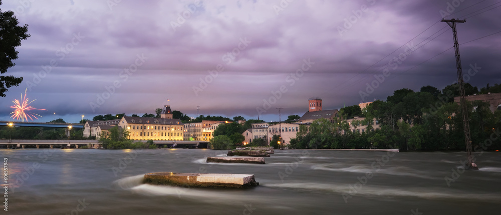 Fireworks over the Fox River, Appleton, WI. #606557943