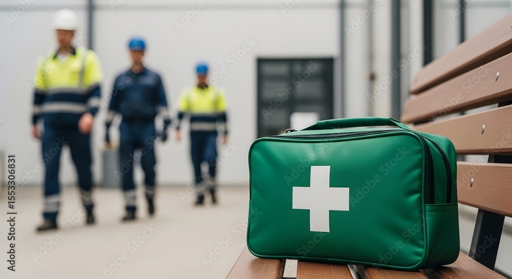 First aid kit offers safety and medical emergency support to construction workers ensuring immediate care in a professional environment. #1553306831