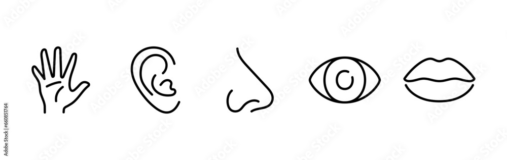 Five human senses editable stroke outline icons set isolated on white background flat vector illustration. Pixel perfect. 64 x 64. #660851764