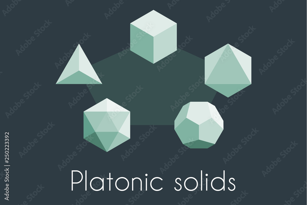 Five Platonic solids. Sacred geometry vector illustration. Tetrahedron, icosahedron, octahedron, dodecahedron, cube #250223392