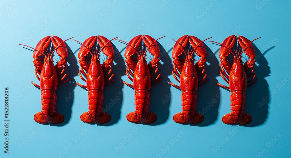 Five Red Lobsters in a Row on Blue Background #1522818206