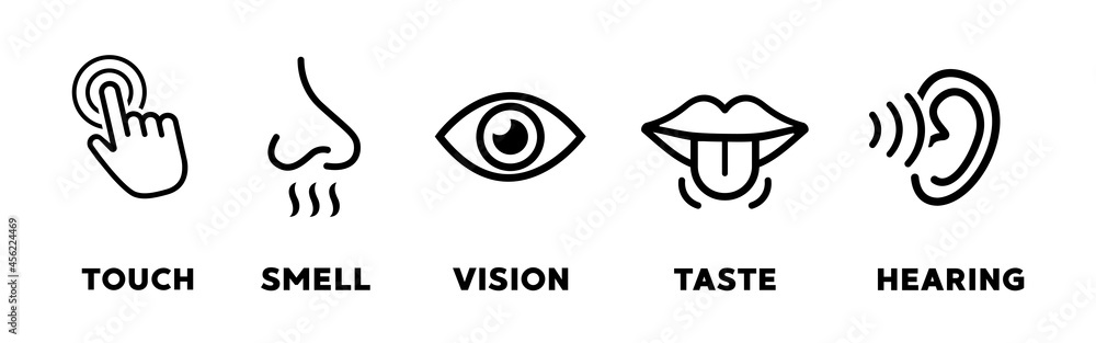 Five senses vector icons set. vision, hearing, touch, taste, smell #456224469