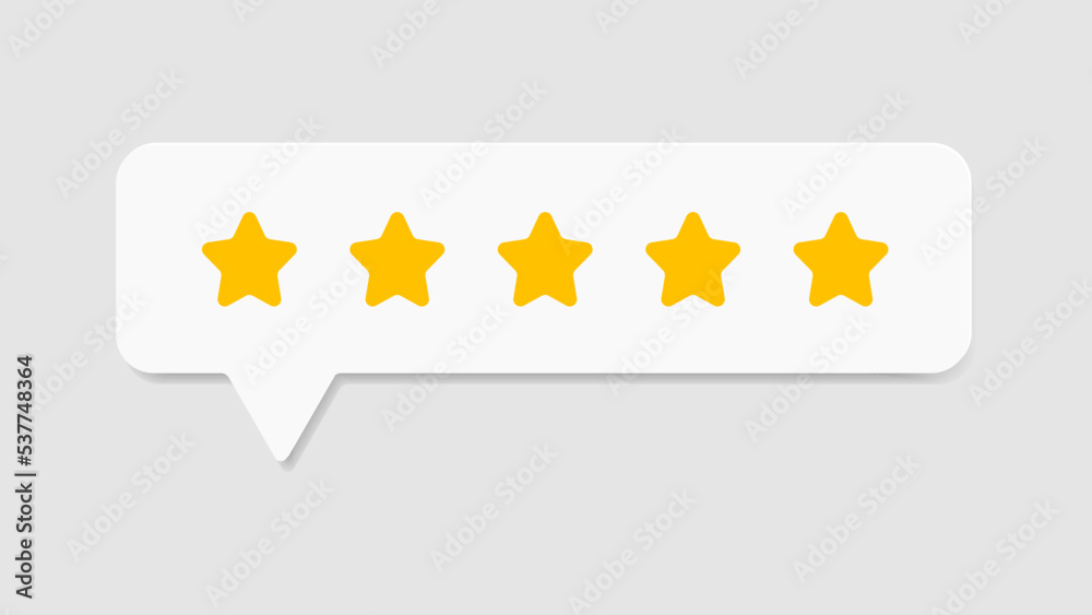 Five star rating vector in paper cut style design isolated on grey background. Feedback, Review, and rate us concept. Vector illustration. #537748364